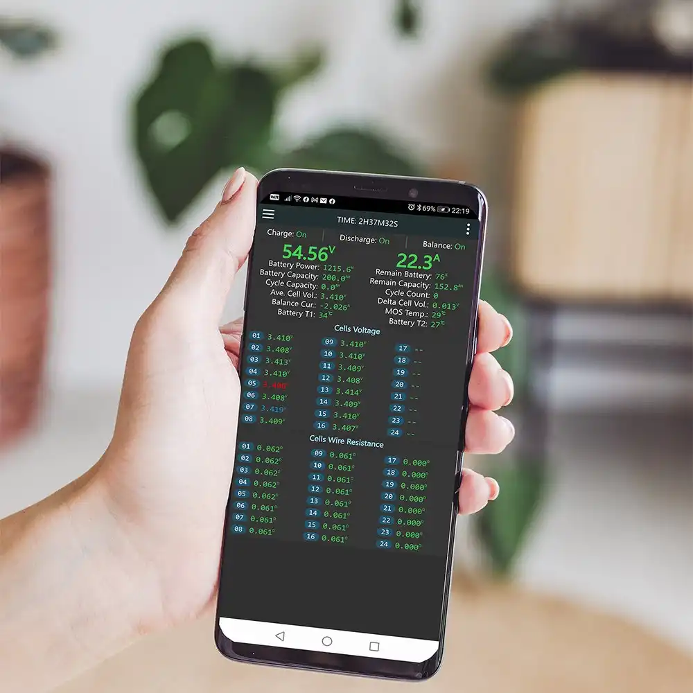Jikong 4S-8S JK-B2A8S20P bluetooth aracılığı ile mobil uygulamadan kontrol edebilmeye olanak tanır. Aktif balans özelliği sayesinde bataryanızı oluşturan hücreler sürekli olarak dengelenir ve çok daha uzun kullanım ömrü sunar.Jikong 4S-8S 200A Deşarj 2A Aktif Balans Bluetoothlu Smart BMS, bir akıllı batarya yönetim sistemi (BMS) ürünüdür.İşlevselliği, aşırı deşarjı önlemek ve hücreler arasındaki dengesizliği düzeltmek gibi temel görevleri içerir.Ayrıca Bluetooth özelliği sayesinde, bu BMS, bir akıllı telefon veya tablet üzerinden izlenebilir ve kontrol edilebilir. Bu, kullanıcılara batarya sağlığı ve performansı hakkında gerçek zamanlı bilgilere erişim sağlar. Bu ürün, güvenli ve verimli bir batarya deneyimi sunmak için tasarlanmıştır.Dengeleme Yolu: Aktif Dengeleme.Aktif Dengeleme Akımı: 2A.Sürekli Deşarj Akımı: 200A.Zirve Deşarj Akımı: Kısa süreliğine 350A’ye kadar destekler.Aşırı Akım Koruması: Var.Çıkış Kablo Yolu: Aynı porttan çıkış yapar.Tek Hücre Gerilim Ölçeği: 1 ila 5V arasındaki tek hücre gerilimini ölçer.Gerilim Hassasiyeti: ±3mV hassasiyetinde.Aşırı Şarj Koruması Gerilimi: 1.2V ila 4.35V arasında ayarlanabilir.Aşırı Şarj Koruması Kaldırma: 1.2V ila 4.55V arasında ayarlanabilir.Aşırı Deşarj Koruması Gerilimi: 1.2V ila 4.35V arasında ayarlanabilir.Aşırı Deşarj Koruması Kaldırma: 1.2V ila 4.35V arasında ayarlanabilir.Sıcaklık Sensörü Miktarı: 3.Kısa Devre Koruması: EVET.BT Fonksiyonu: Android ve IOS’u destekler.GPS Uzaktan Kumanda: Destekler.Diğer İletişim Portu: RS485/CAN (özelleştirilebilir).